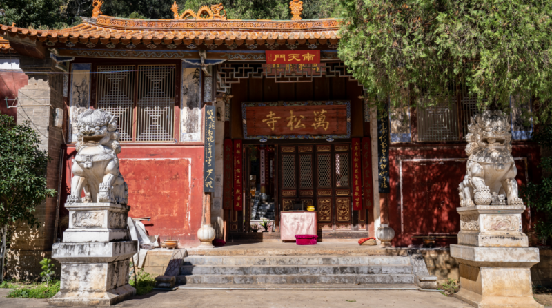 万松寺位于抚仙湖西岸,始建于明代,重建于康熙二十四年,由羽客段泰利募集修建(公元1685年),建筑(占地)面积1400平方米,整座寺庙依山而建,背山面湖,四周松木苍翠,完整保存了清代中晚期的建筑风格,为澄江境内的一大寺观,有较高的文物价值,现为玉溪市市级文物保护单位。