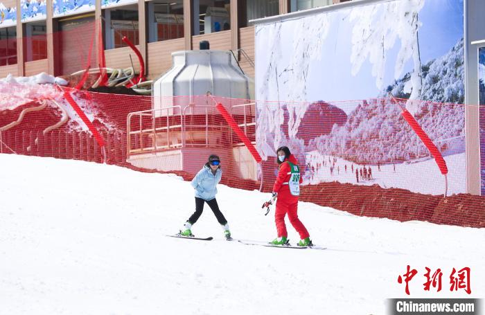 (图为游客感受冰雪乐趣。金佛山景区供图)