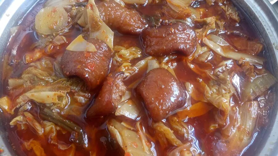 第三种制作酸菜的方法,就是宾川的民众在操办丧事,或者婚事时,有意多准备一些宾川黑皮、酥肉、千张等食材,在正客的当天晚上,利用办客的大锅大灶,将剩余的各种荤菜、素菜与辣椒、大蒜、花椒、生姜等一起放到大锅里炒煮,再利用微火,慢慢地炖煮到第二天早上,形成一锅自然发酵变酸的美味酸菜。
