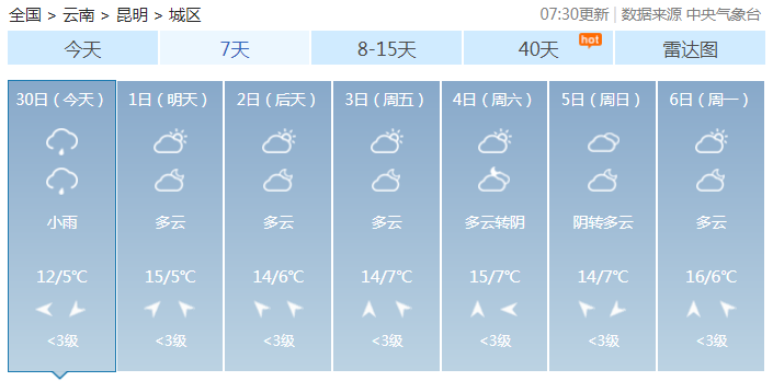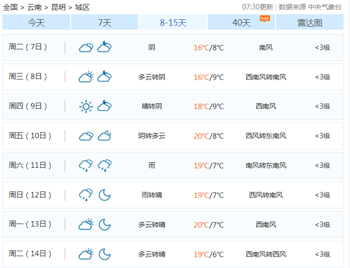本周昆明的气温