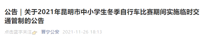 《关于2021年昆明市中小学生冬季自行车比赛期间实施临时交通管制的公告》