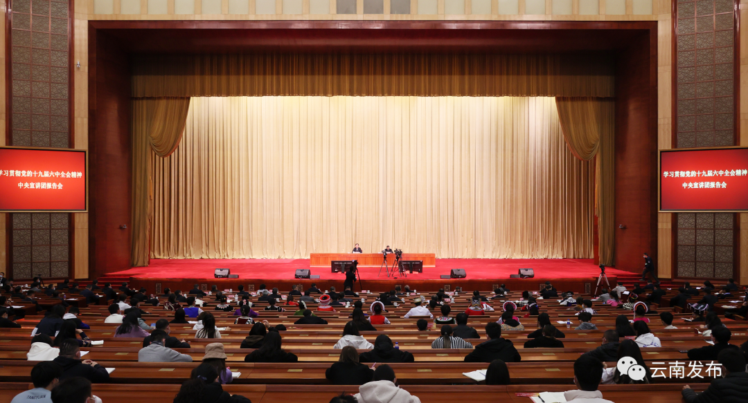 12月2日上午,根据党中央的统一部署,学习贯彻党的十九届六中全会精神中央宣讲团报告会在昆明举行。