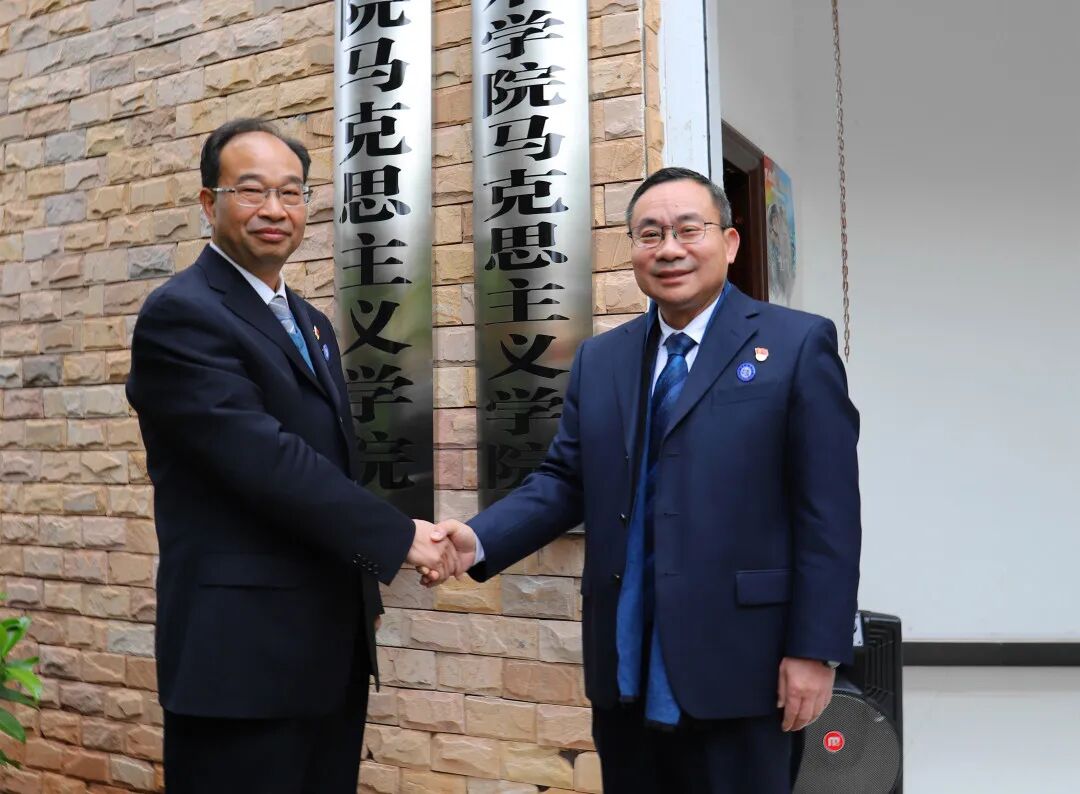 (党委书记李自云,党委副书记、院长卢显亮为马克思主义学院揭牌。)