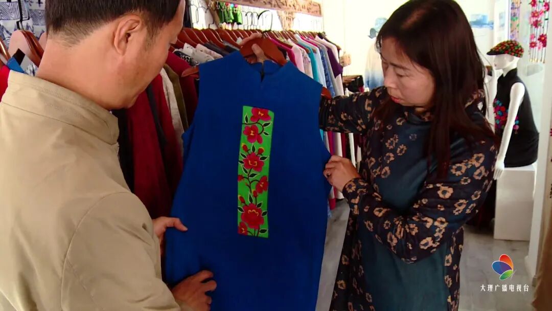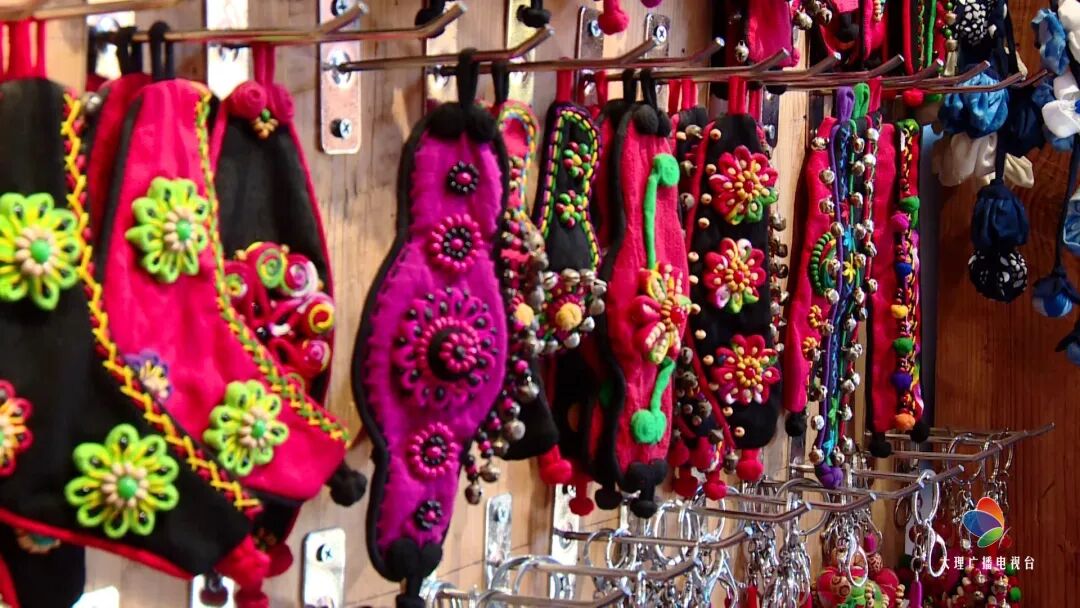 大理州级非物质文化遗产—巍山布扎传承人刘春丽说:“出来创业最开始是做特色服装,后面就用一些边角废料就做出一些各种各样的小玩意儿,就发给客户。比如做一些小耳环搭配我们的民族服装。客户都比较接受,慢慢的订单也就陆续多起来。到后面这些小饰品的订单比服装还多。”