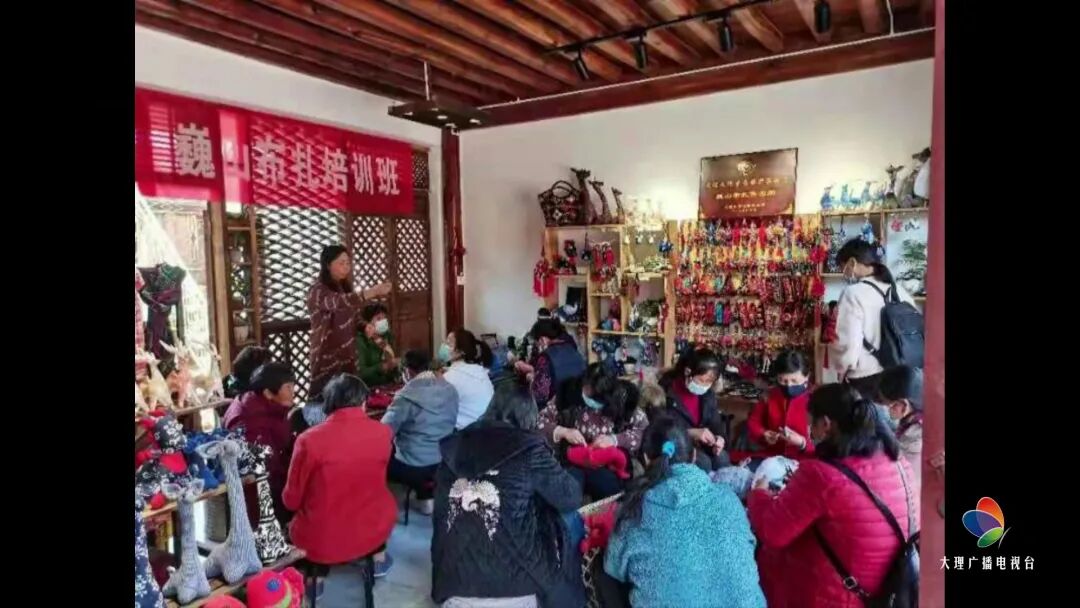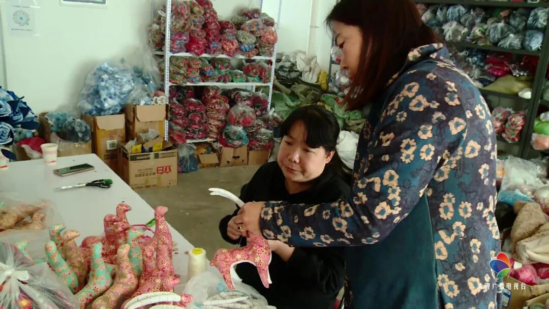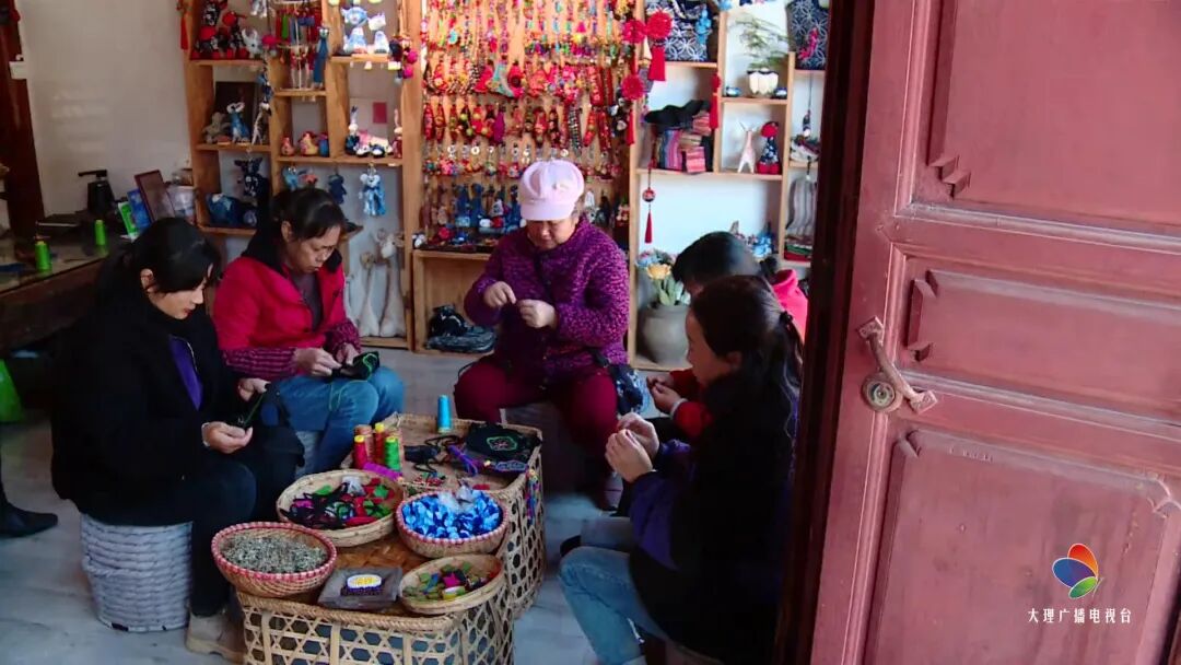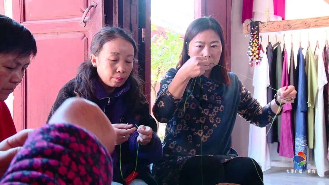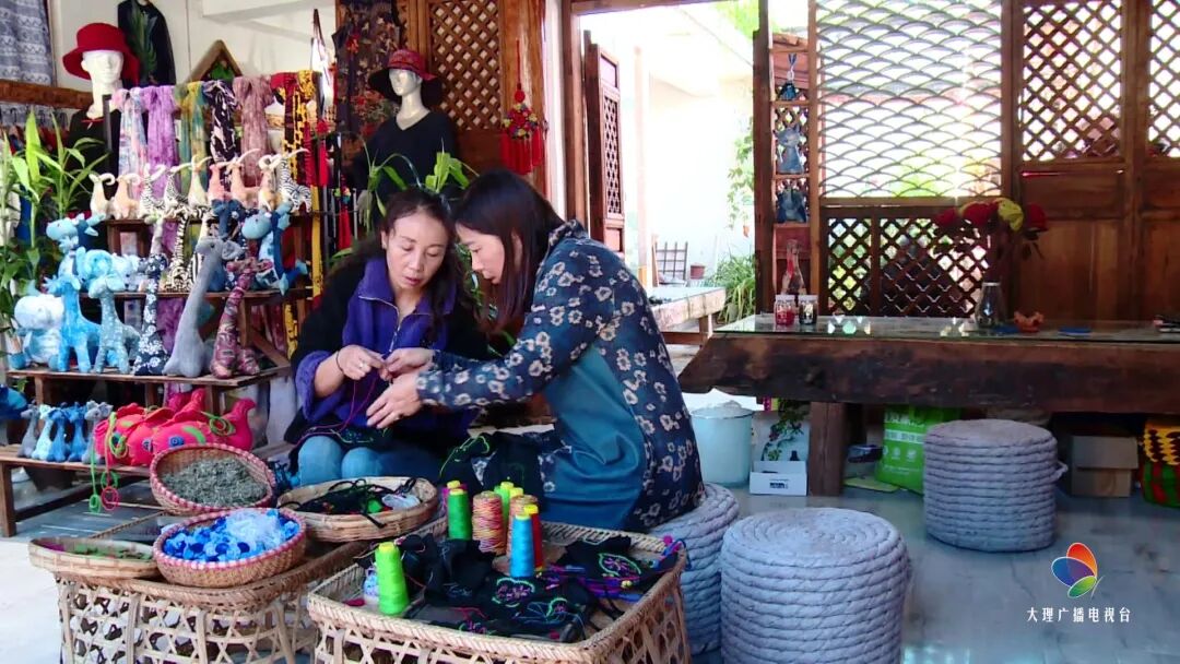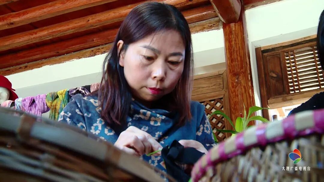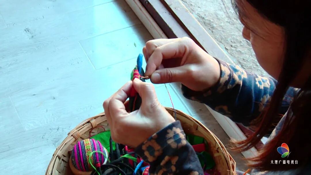 大理州级非物质文化遗产—巍山布扎传承人刘春丽说:“我觉得有这种多的人帮我们做是好事,只要他们愿意做,来工厂我们都教会他们,让他们领材料回去。”