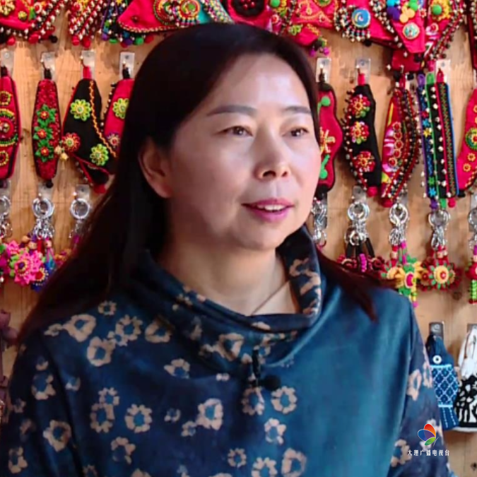 大理州级非物质文化遗产—巍山布扎传承人刘春丽说:“我们的产品和传统的布扎还是有一些改变,为了迎合市场,传统的布扎产品好多要和日常生活贴近,还是有困难。但慢慢的我们做了大胆的创新,做出好多文创产品,在布扎里又加了其他元素。”