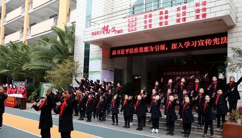 楚雄彝族自治州楚雄市北浦小学法治副校长、楚雄市人民法院立案庭一级法官秦丽到学校宣讲宪法知识,并带领全体师生向宪法宣誓。参加宪法宣誓仪式的全体师生列队肃立,高唱国歌。