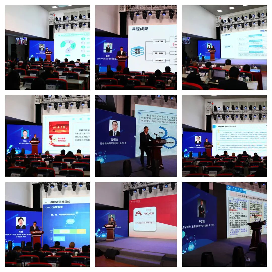 各单位分别作了《云南省地方电力立法回顾与前瞻》《云南地方电力立法新问题探讨》《电力联合行政执法机制的探索与实践》《云南电力市场合规体系构建与应用》《供电所法律风险防范课题》《玉溪供电局“1234”打好依法维权组合拳》《快速合规推进500千伏输变电工程建设实践》《基于员工违法风险管控产生“溢出效应”的模式创新与实践研究》《系统管控客户侧安全及合规风险》《在大局下建设卓越法治云网》的主题发布。