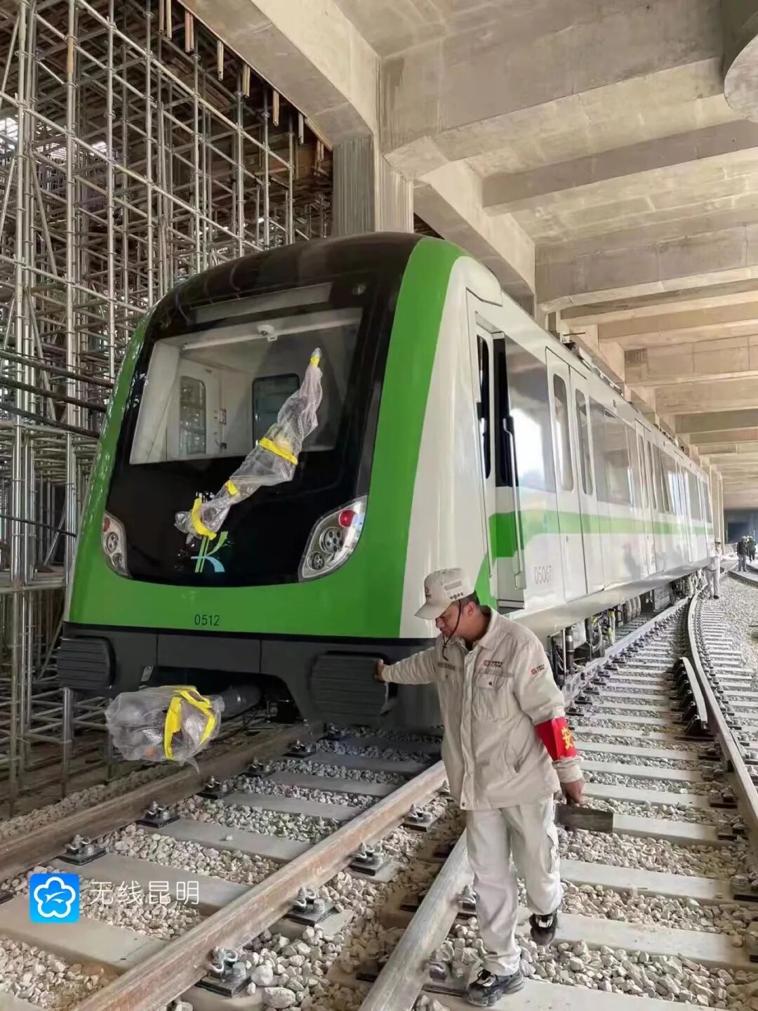 (2021年11月26日昆明地铁5号线首列车运抵世博车辆基地 资料图)