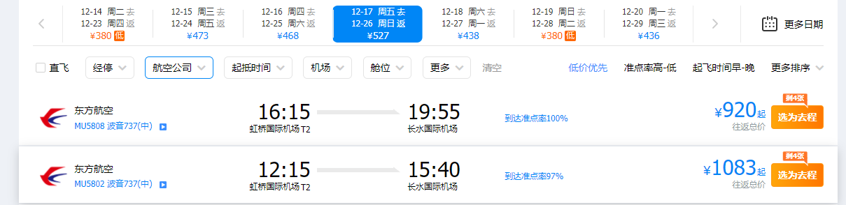 从行程看,按其推荐航班,上海至昆明出发时查询的往返机票价格最低为595元。