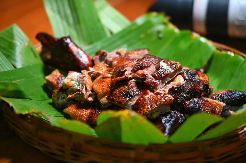用菜叶包裹后再用瓦泥包裹一寸厚