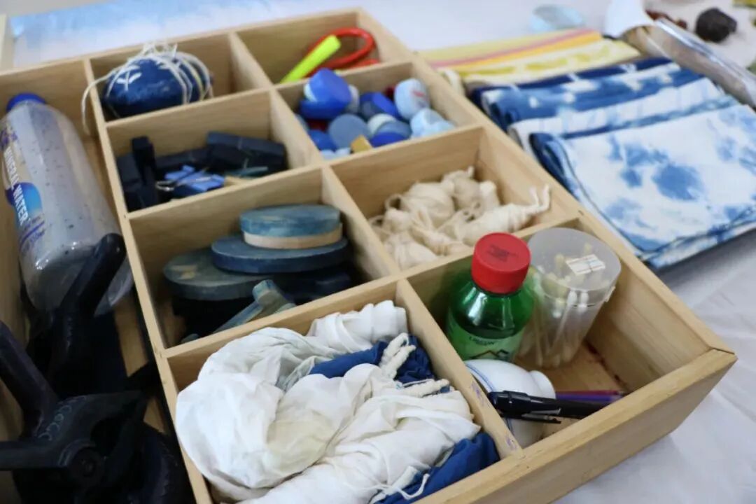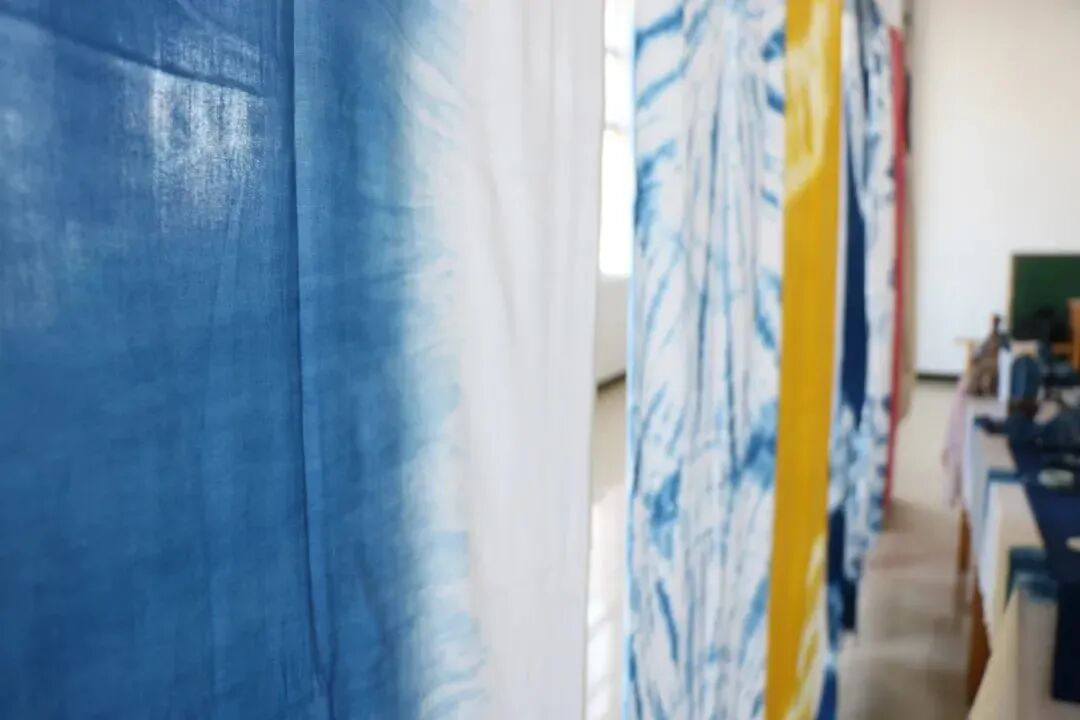 课堂上,授课老师在动手操作之前,详细地向同学们介绍了扎染的手法和过程,扎染的材料,如何进行扎染,并鼓励他们大胆尝试,充分发挥想象力和创新力……