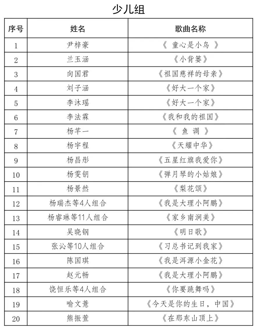 庆祝大理白族自治州建州65周年大理州第十七届《洱海歌手》大奖赛初赛成绩公告大理州第十七届《洱海歌手》大奖赛,自比赛通知发布至12月6日,在各参赛单位和选手的精心组织和踊跃参与下,共收到400多个参赛视频,参赛人数达600多人(含组合人数)。12月7日,经初赛评委会认真评选,评出六个组别共120位选手(组合)进入决赛。现将初赛成绩及决赛相关事项公告如下:
