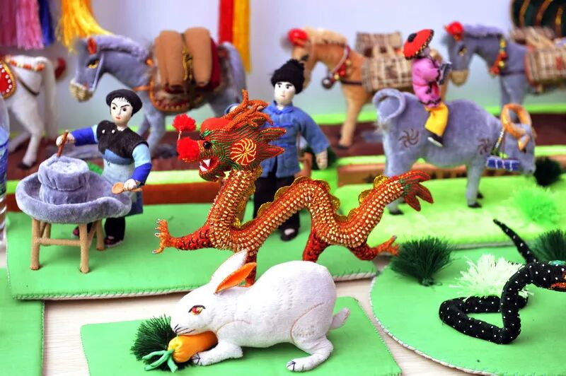 充分运用布扎的特点,大多采用夸张变形的手法,尽量弥补布扎在造型上的局限,使布扎饰物在稚拙中透出可爱生动。