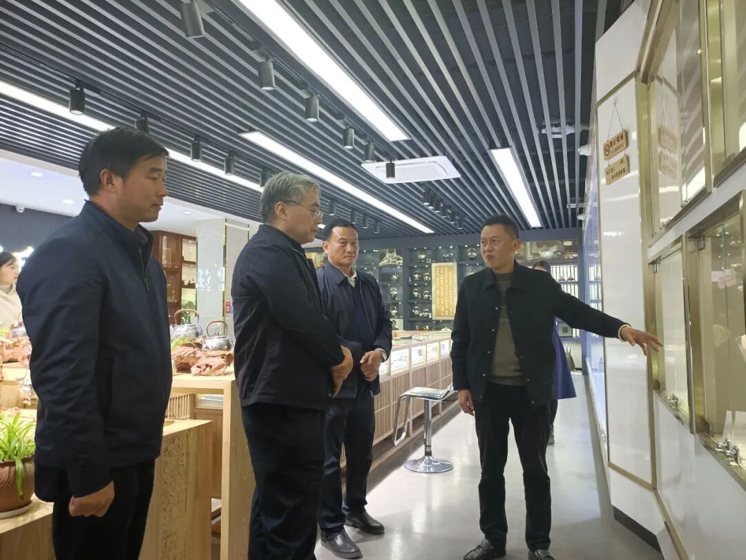 在鹤庆县,考察组先后到大理文化生态保护实验区鹤庆银器锻制技艺寸发标和寸彦负责的传习所、新华银器小镇、大理传统工艺工作站鹤庆基地(李小白工作室)等地,调研非遗传承、知识产权保护、工作站基地建设、银器锻制技艺及产业发展等情况。考察组认为,鹤庆银器历史悠久、文化底蕴丰厚,银器锻制技艺精湛,银器产业已具备一定规模。调研组强调,鹤庆县要建设好银器锻制技艺非遗传习所,加强银器文化交流,培养更多的银器锻制技艺大师,促进银器文化的传承和发展;要注重知识产权保护,加强自主创新,加强银器设计研发,努力打造鹤庆银器地理标志品牌;要做好新华银器小镇综合管理工作,把小镇建设成为具有鹤庆特色的白族精品小镇。