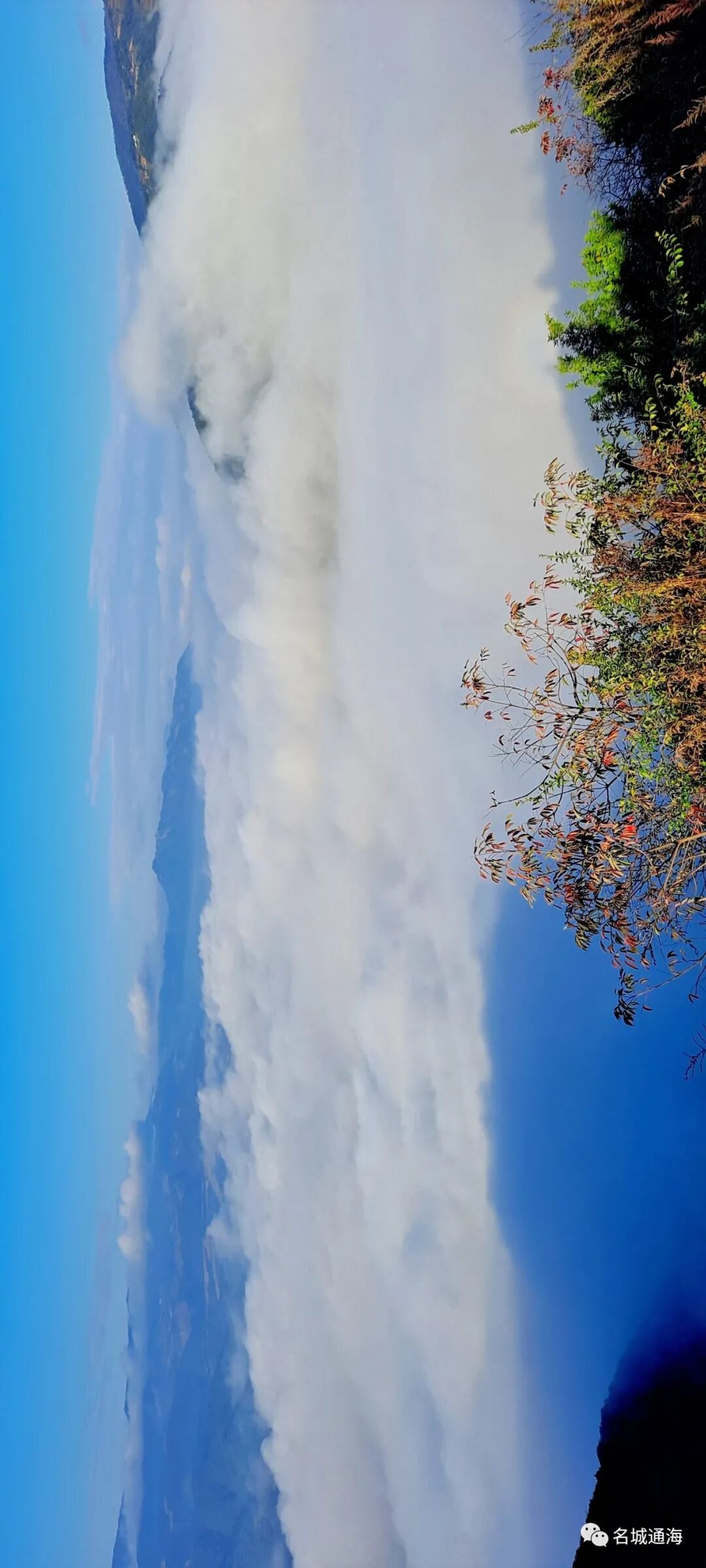 烟波浩渺的云河从一座座山峰流向山谷,流过村庄,流过溪流、树丛,流向广袤的原野,云卷云舒,茫茫无际。远远望去,似银蛇轻舞,翻腾奔涌,蔚为壮观!