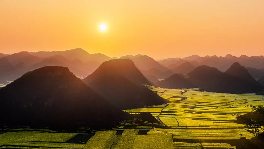 罗平峰林有“鸡鸣三省”的美誉。气候温和湿润,夏无酷暑,冬无严寒。罗平岩溶地貌突出,盆岭相间,峰峦叠嶂。明代大旅行家徐霞客曾写下“罗平著名迤东”的赞叹。而在冬春季节,有“世界最大的天成自然花园”之称的坝子里30万亩油菜花盛开,汇集成一片片金色的海洋。