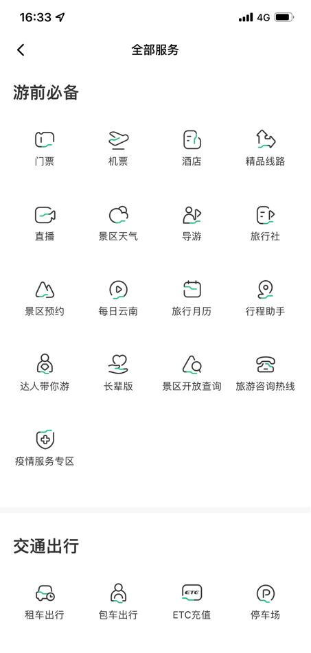 目前市面上的大部分适老化产品,在展现层面上都是以大字体、大按钮为主。在服务层面上,没有根据老年人的使用习惯,对服务内容进行筛选,多个服务进行堆叠,给老年用户造成了困扰。在内容层面上,不少适老化产品的内容低质,甚至还有广告,容易误导老年人。鉴于此,“游云南”App需要聚焦老年人使用的高频服务场景,坚持传统服务方式与智能化服务创新并行,切实解决老年人在运用智能技术方面遇到的突出困难。通过前期对政策、行业、使用场景等的调研及综合分析,“游云南”App5.0版新上线了“长辈模式”,通过优化界面、简化程序、增大字体等方式,更好满足老年人的实际上网需求,让老年人会用、愿用、爱用。