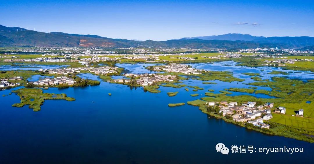 洱源西湖,是国家湿地公园、国家AAA级景区,位于苍山第一峰——云弄峰山麓。湖中有六村七岛,构成村内有湖,湖中有村,岛上有人家的天然村湖画景。西湖动植物资源丰富,有植物种类3000多种,动物种类200多种,尤其尚存世界濒危珍稀野生水鸟——紫水鸡。