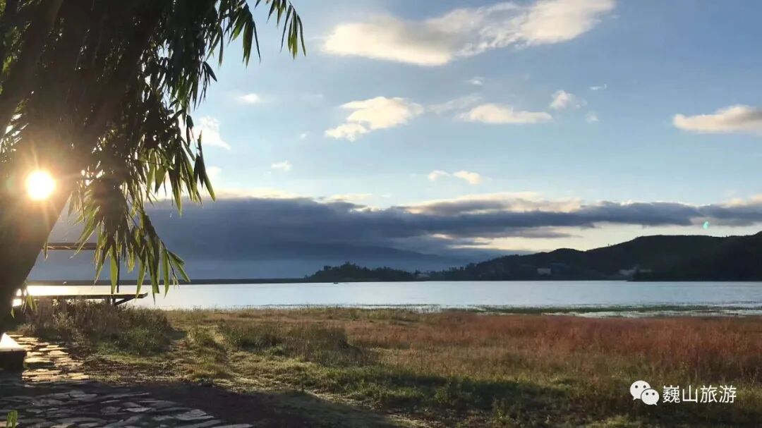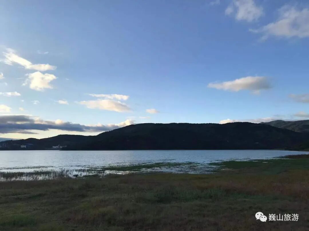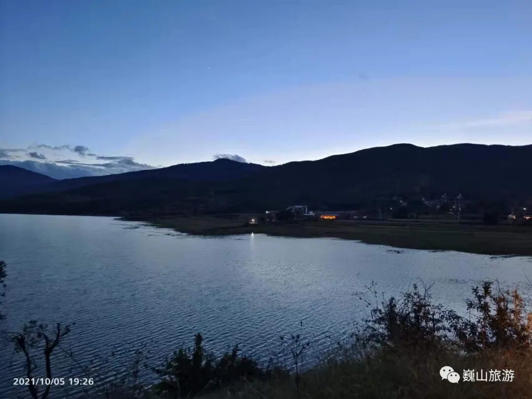 到达苍鹭谷时,天色已晚。夕阳柔美地洒落大地,村庄背山而居,似有白色的袅袅炊烟从房子上空腾起。谷地中一潭湖水静谧得像一块光亮的镜子,泛着粼粼波光。那是当地的农灌水库,也是苍鹭谷的核心景观。远山如黛,倒影在水中。水质澄清透明,此时倒映着天光山影,令整个山谷清朗肃穆。这里位于巍山县城西北角,距离最近的镇子仅十多里。