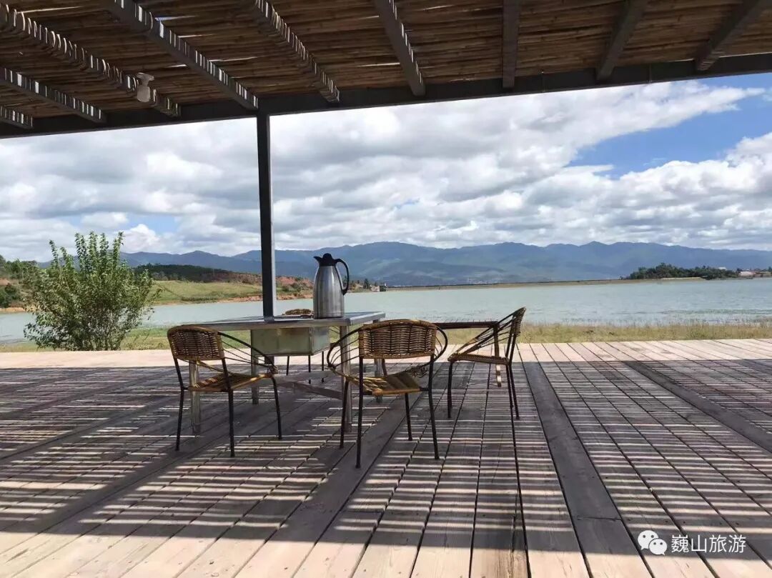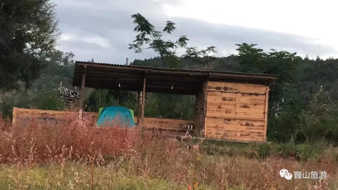 依傍着湖水有大片平坦的草地,苍鹭谷景区就势在草地东侧搭了一座简易的小木屋,一间屋子,连着一个厅房。厅房没有窗户,四周通透。