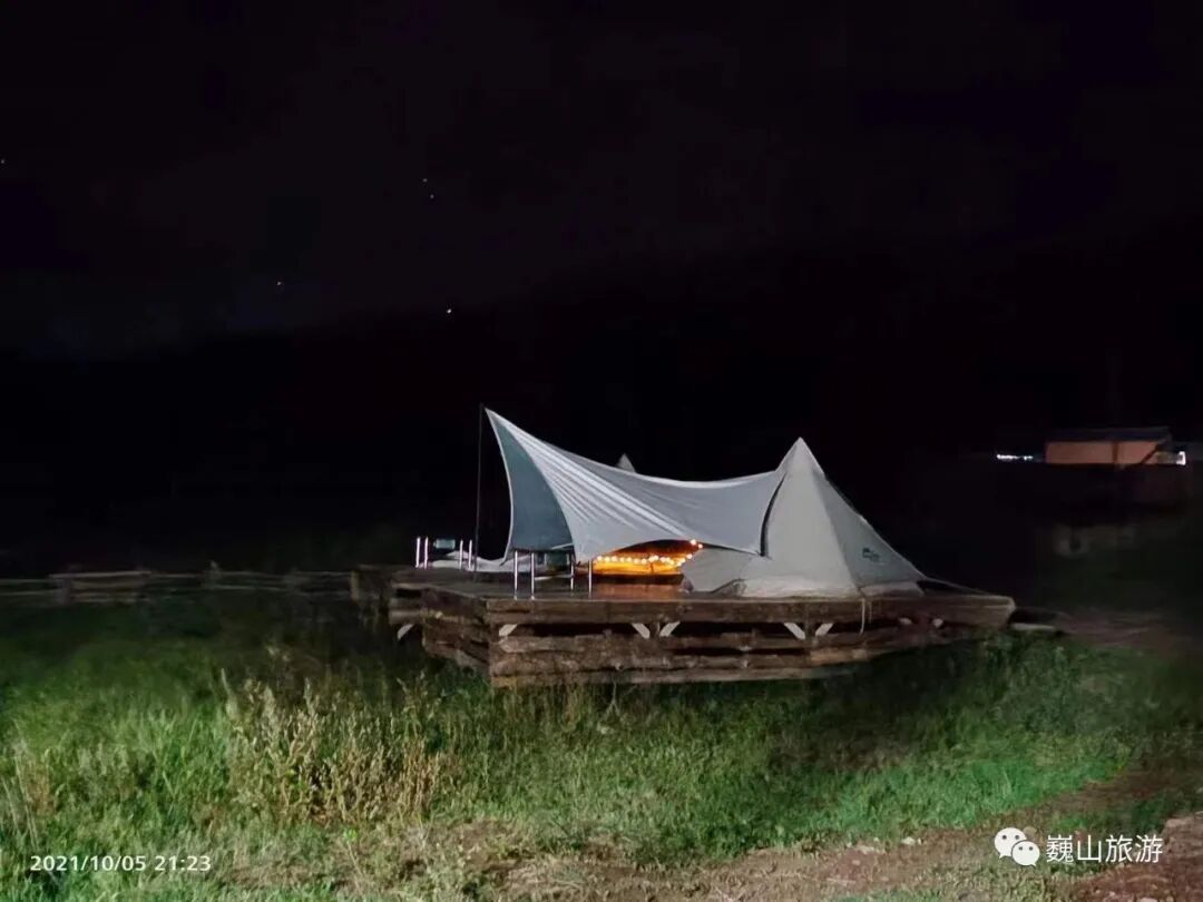 一阵嘻嘻哈哈声由远而近传来,一群人手持电筒向木屋走来。在离我们帐篷不远处停下,开始麻利地搭起帐篷,架起了烧烤架子和手鼓。