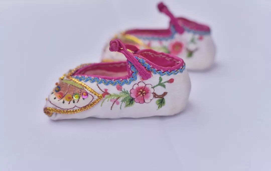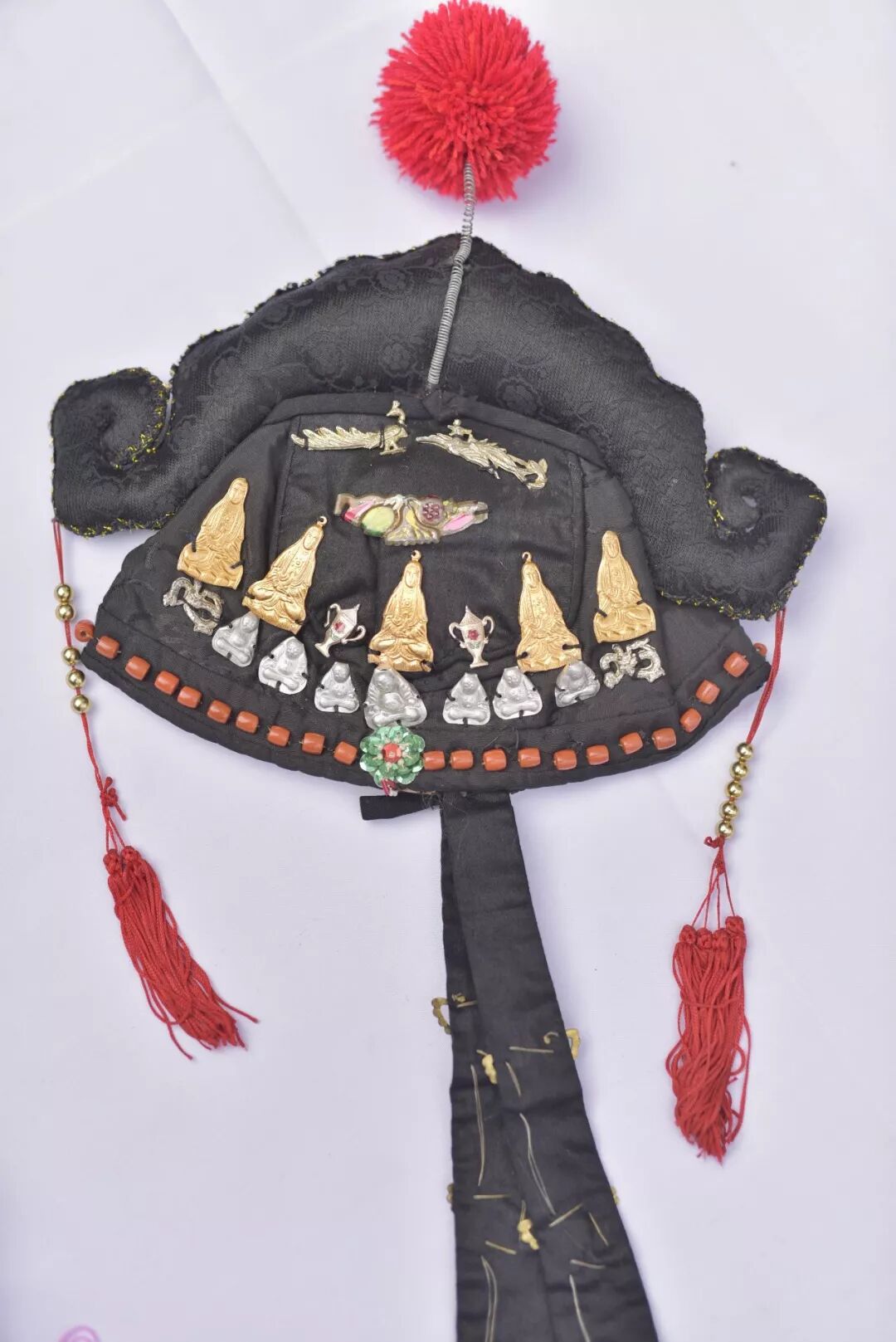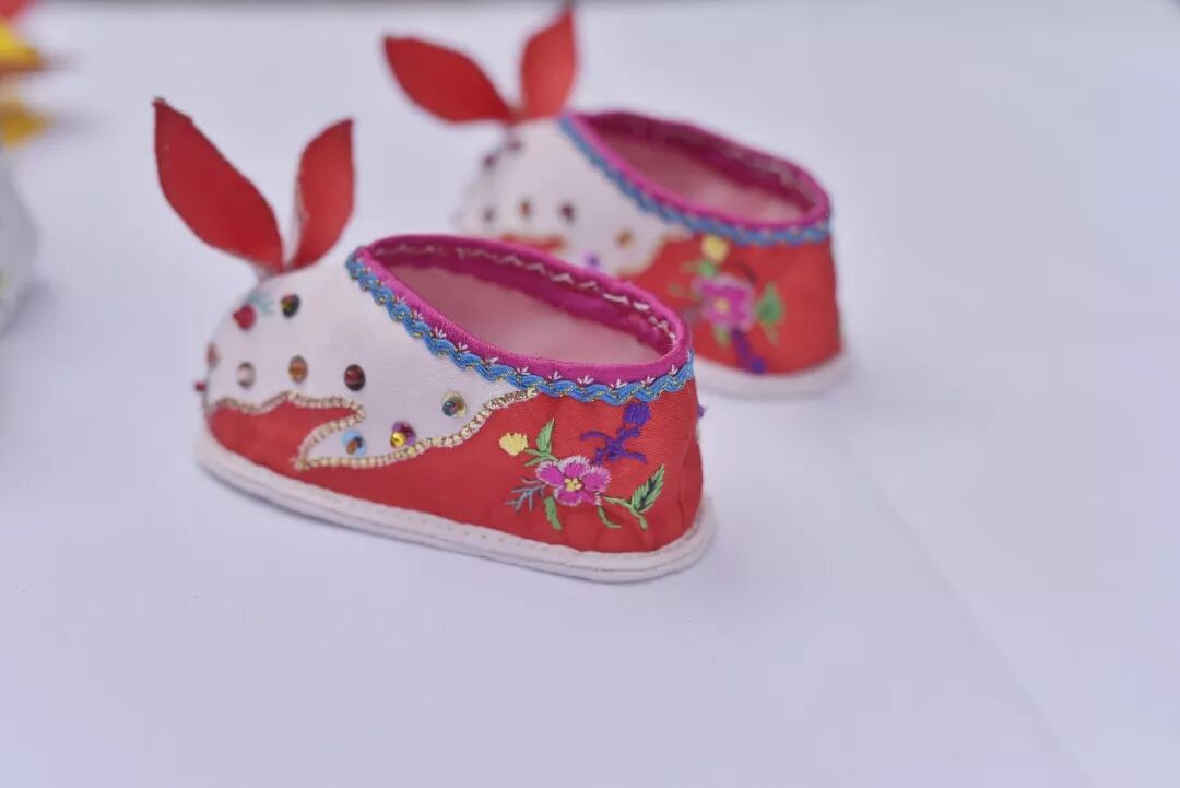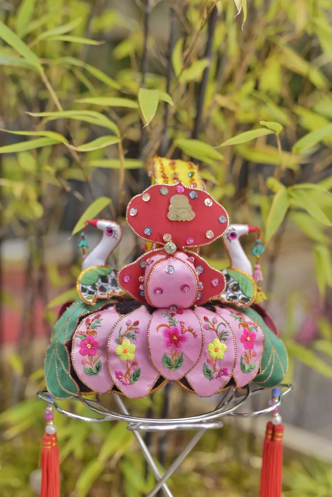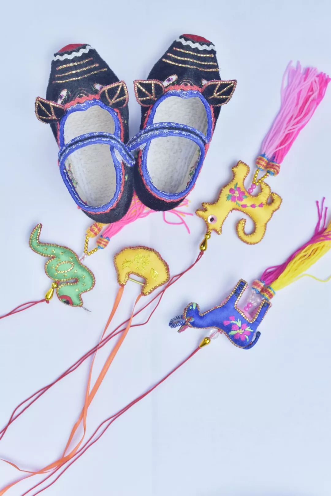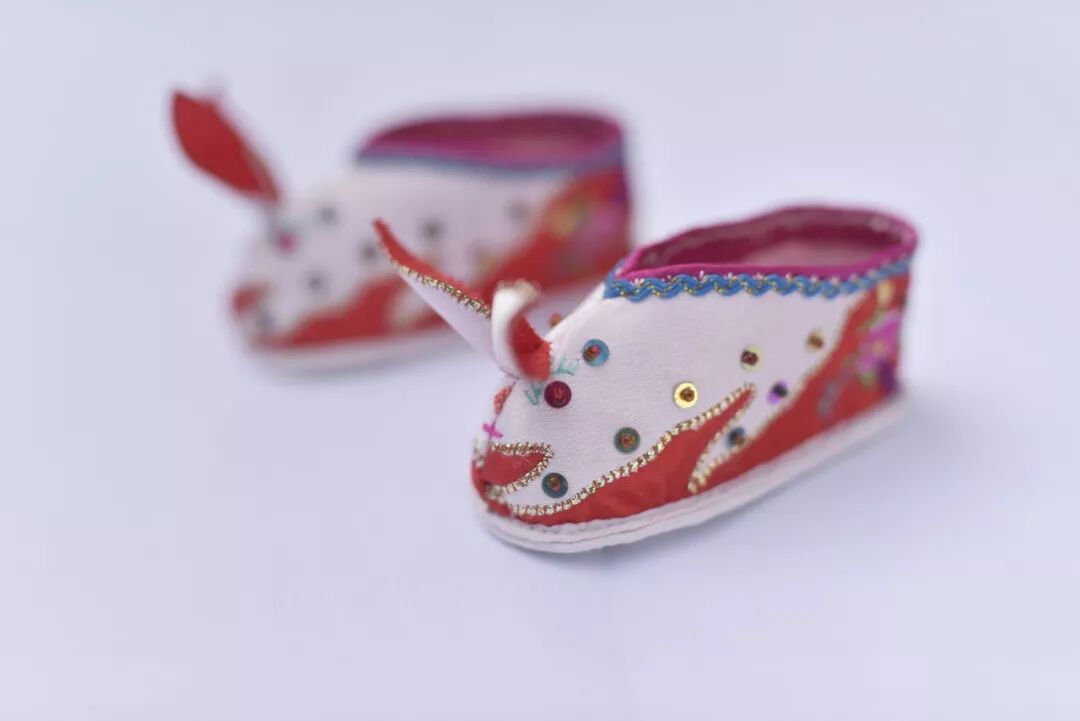 小有小的精妙,大有大的学问。除了小挂件精细别致,赵新妹做的大件帽子、婴儿鞋也十分精美。纯手工的布扎婴儿帽将布扎与刺绣工艺结合,变换出莲花、虎头、狗头等不同的形状,再在帽子上装饰诸如古玉、珠宝等配件,做工十分讲究。赵新妹说,一顶帽子要用四五十天才能缝制好,用心程度可想而知。