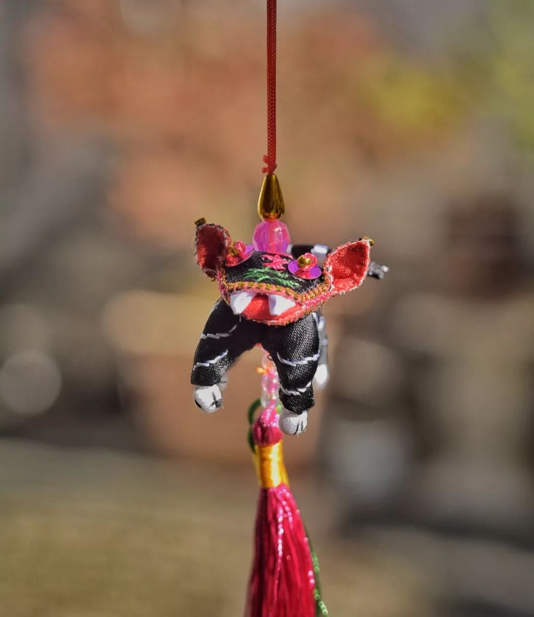 赵新妹通常都是把十多串的布扎(剑川的布扎按串来计算,一般将8个及其以上的配件穿成一串)放在一起卖。作品不仅花样多、款式新,还可以根据喜好挑选狮子、绣球、老虎 、童子等不同小物件,十分讨小孩子喜欢。“很多熟人都是找着过来买,一般不到下午五点,所有布扎便被抢购一空。”
