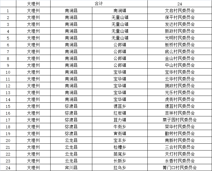 大理白族自治州乡村入选详细名单(24个)↓↓