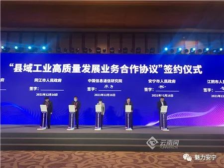 论坛期间,中国信通院与安宁市签署了合作协议,双方将在加快推进新一代信息技术和制造业深度融合,助推国家战略区域落地,促进区域协同发展等方面,开展一系列富有成效的合作。