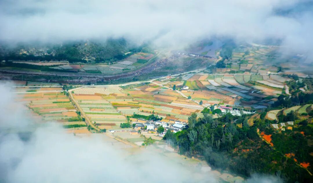 远山如黛,村庄、田园隐没于茫茫云雾中,若隐若现,海市蜃楼般美不胜收,丹青水墨尽收眼底。