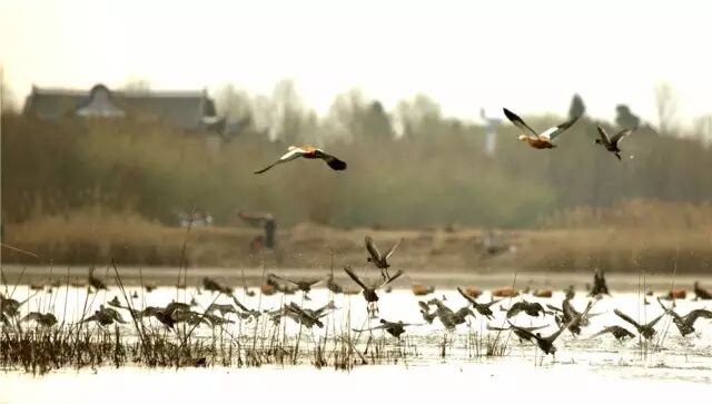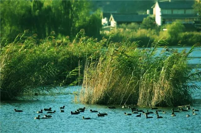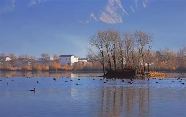 水波荡漾的草海,苇丛与柳树褪去苍翠,却又迎来一群更为生机勃勃的小精灵,成群的候鸟跨越千山万水,将在这里度过一个和暖的冬天。