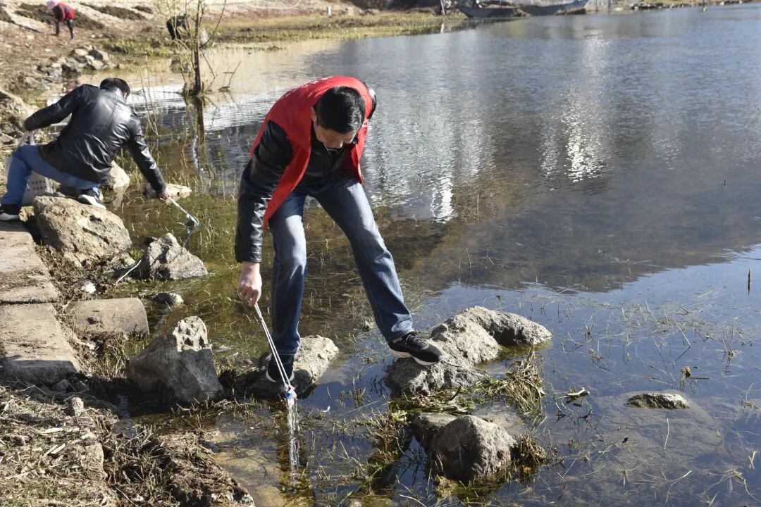 时值冬季,海滩死亡水草及海底沉淀杂物漂浮至海滩,清理难度比较大。经过大家认真清扫,大建旁村洱海流域周边的环境卫生得到了明显改善。