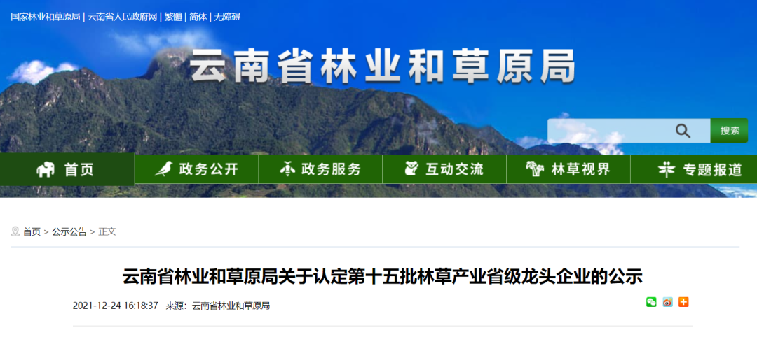 云南省林业和草原局发布公示