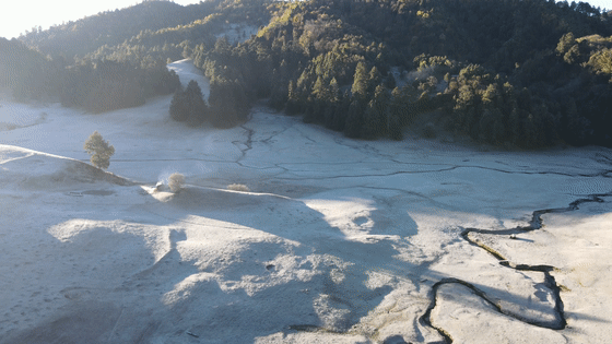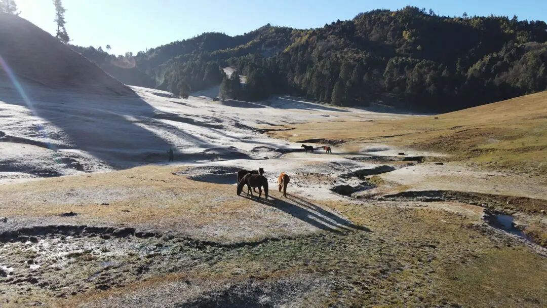 阳光缓缓的照映在草甸上,这里已是霜覆如雪。
