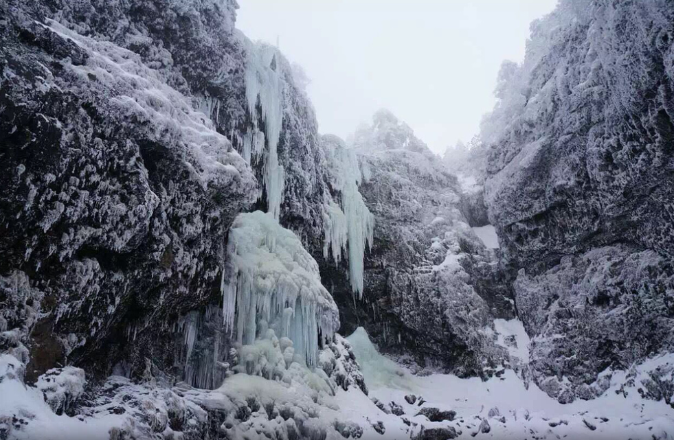 险峻的断层绝壁,独特壮丽的冰瀑群