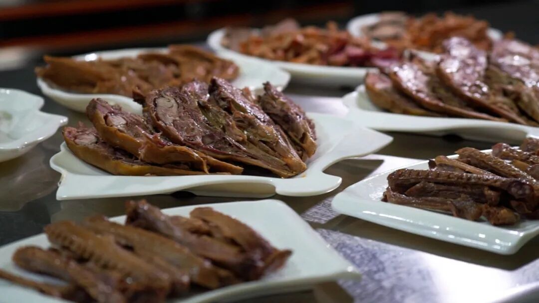 喝完清汤,吃完鹅肉,再点上几盘小菜一起涮涮,既能解腻,又能感受另一番美味。店里的鹅头、鹅掌、鹅翅、鹅脖在卤水和调料的翻滚下,颜色鲜亮,骨香肉嫩、口味醇厚,喷香之余嚼起来还不失弹性,让人欲罢不能。
