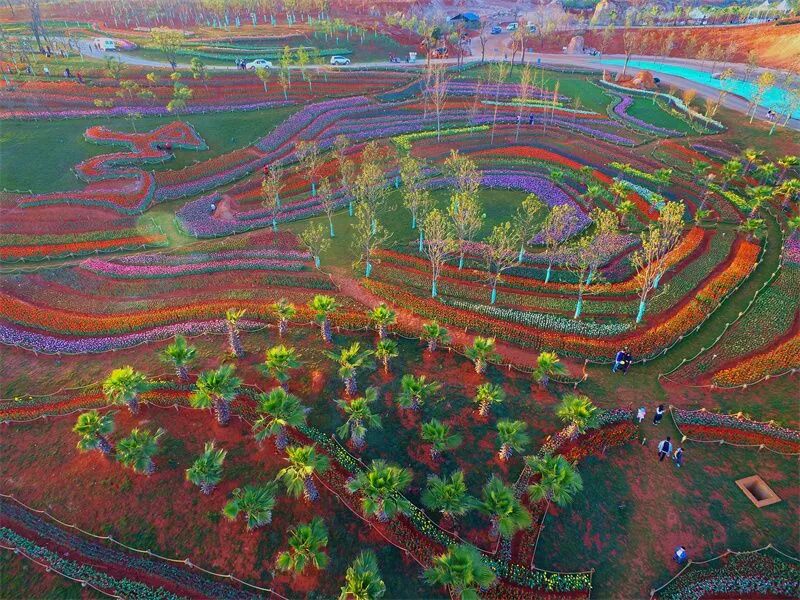 喜欢在四季常开的千亩花田中