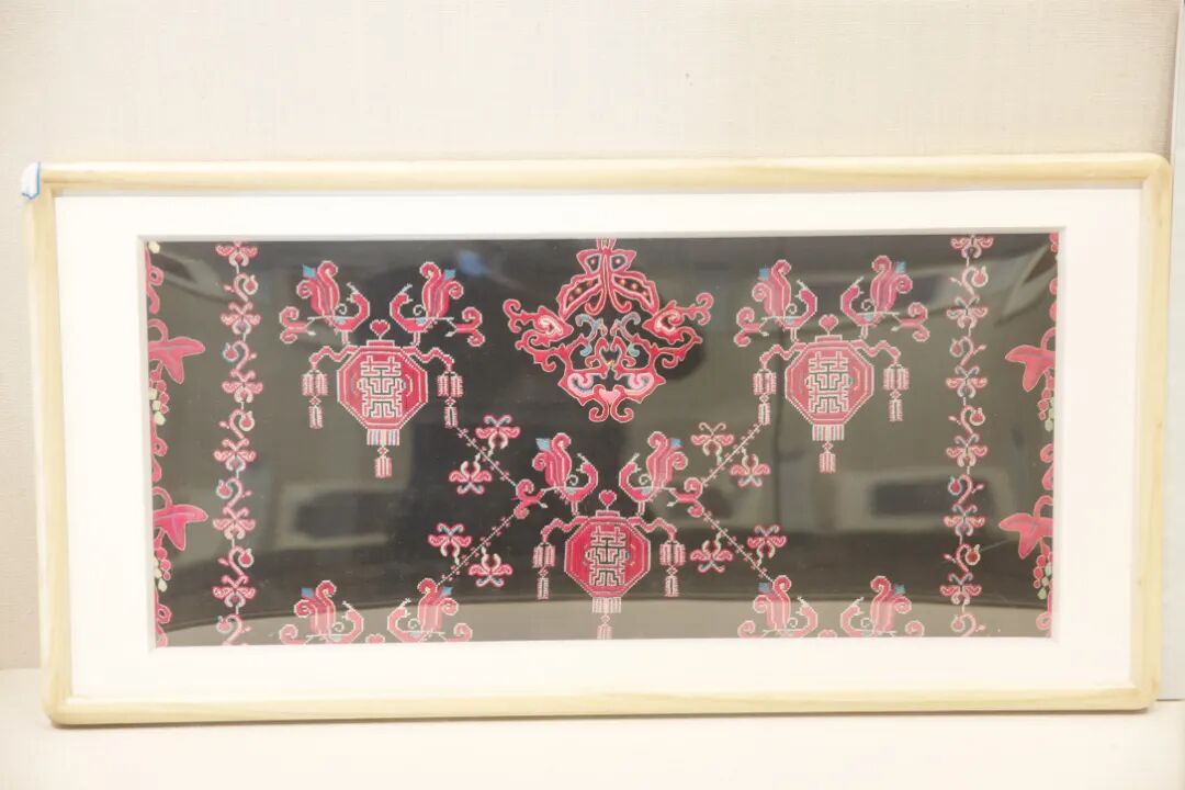 本次展览精选展出近百幅苗绣精品,涵盖了苗族的平绣、金银线绣、破线绣、锁绣、打籽绣、绉绣、辫绣、锁宝绣、茧片绣、锡绣、缠绣、堆绣、挑花、布贴等十多种技法,工艺精湛、色彩绚丽、图案多样,集中展示了瑰丽的苗绣文化。