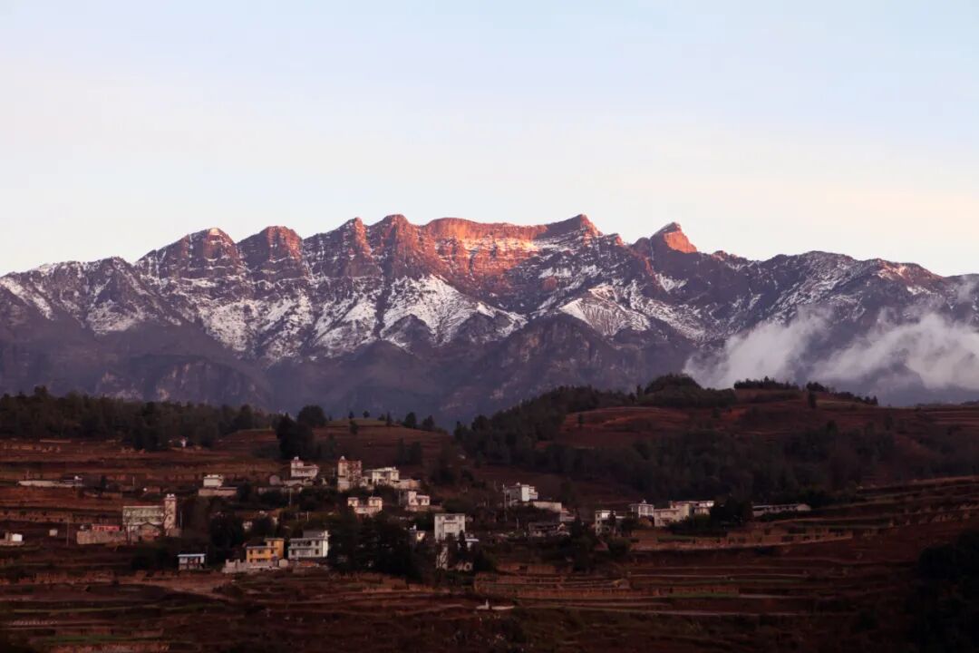 登高望远是我国迎接新年的传统习俗,寓意新的一年身体健康、事业发展、生活幸福。轿子雪山海拔4223.4米,为滇中第一高山,冬日里冰雪覆盖,景色美丽。