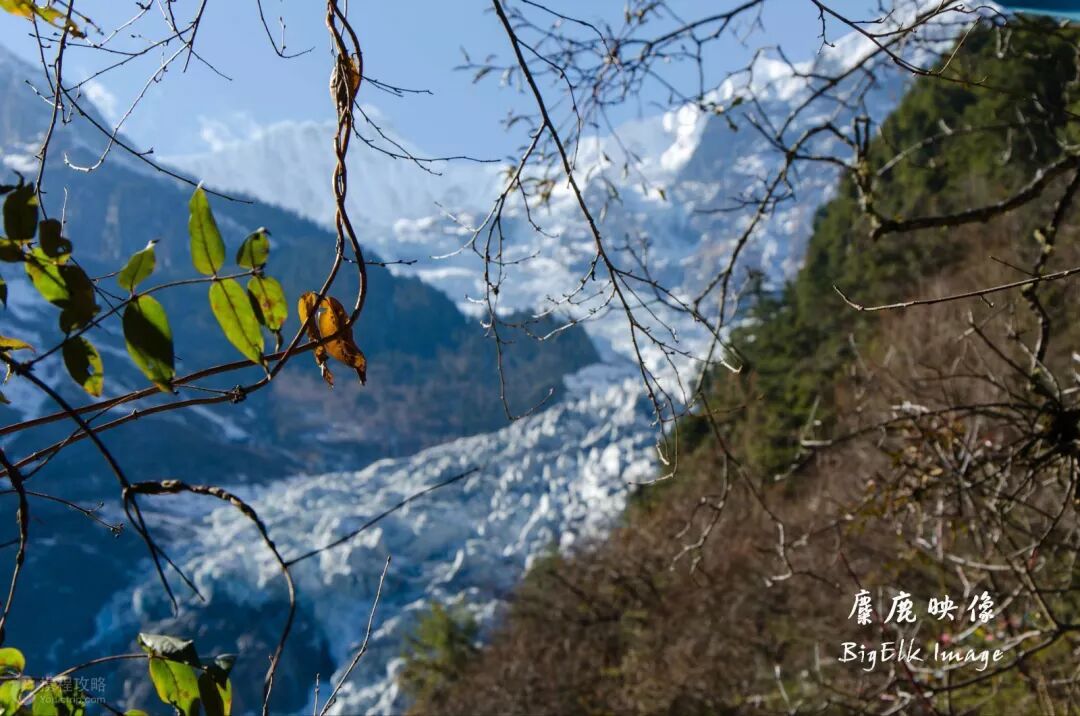 明永冰川位于梅里雪山主峰卡瓦格博脚下,从峰顶一直延伸到山脚下的明永村。明永冰川从远处看,犹如一条银龙从天而降,直扑澜沧江边,是梅里雪山几条冰川里较长的一条。