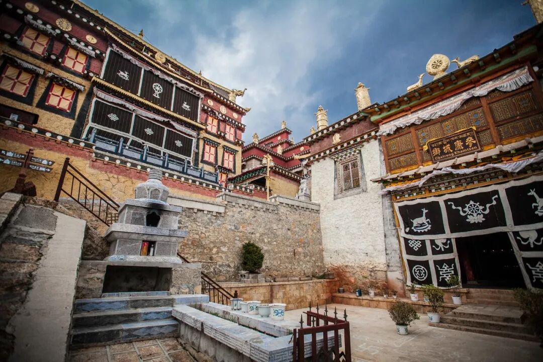 松赞林寺依山而建,远望与拉萨布达拉宫有些相似,因其规模宏大,故有“小布达拉宫”的美誉。这里不仅建筑精美,寺内所藏宗教法器及珍贵文物也颇多。