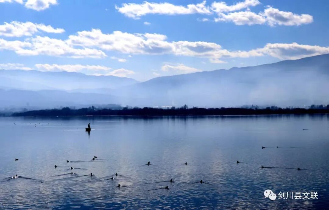 《剑湖泛舟》 李亮辉 国画 33×66cm