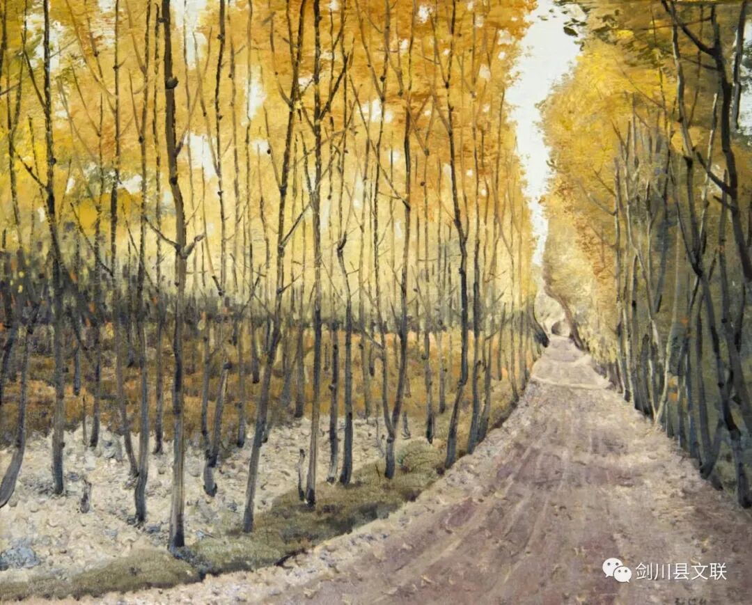 《秋天的小树林》 王坤永 国画 65ⅹ33cm