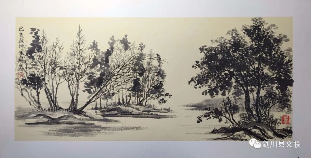《剑湖清秋》 史玉培 中国画 69x136cm