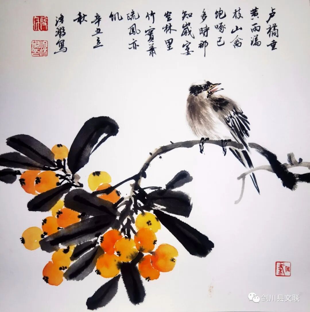 《登枝》 赵泉林 花鸟纸本 50x50cm