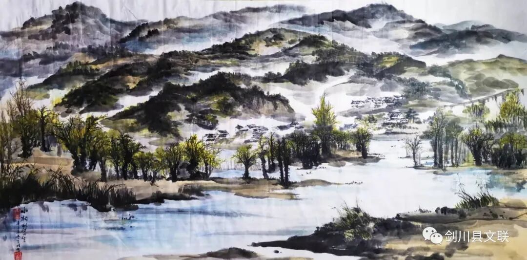 《剑湖之恋》皇 翕 国画山水 45x65cm