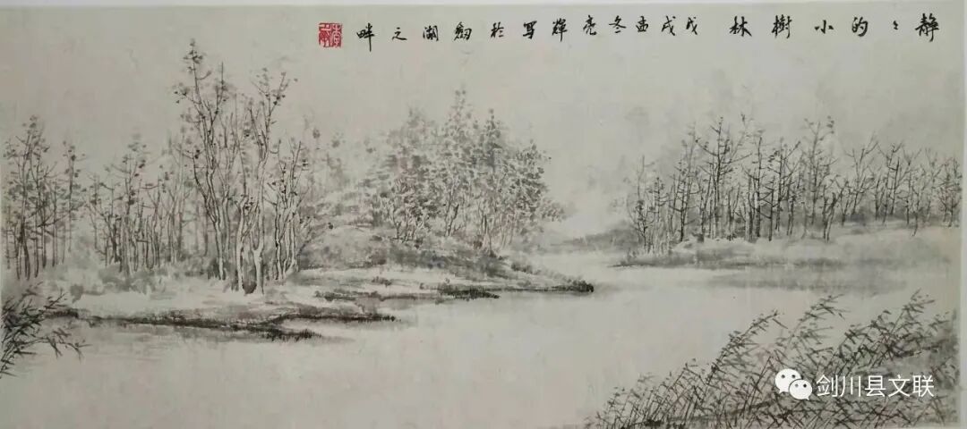《静静的小树林》 李亮辉 国画 33x66㎝