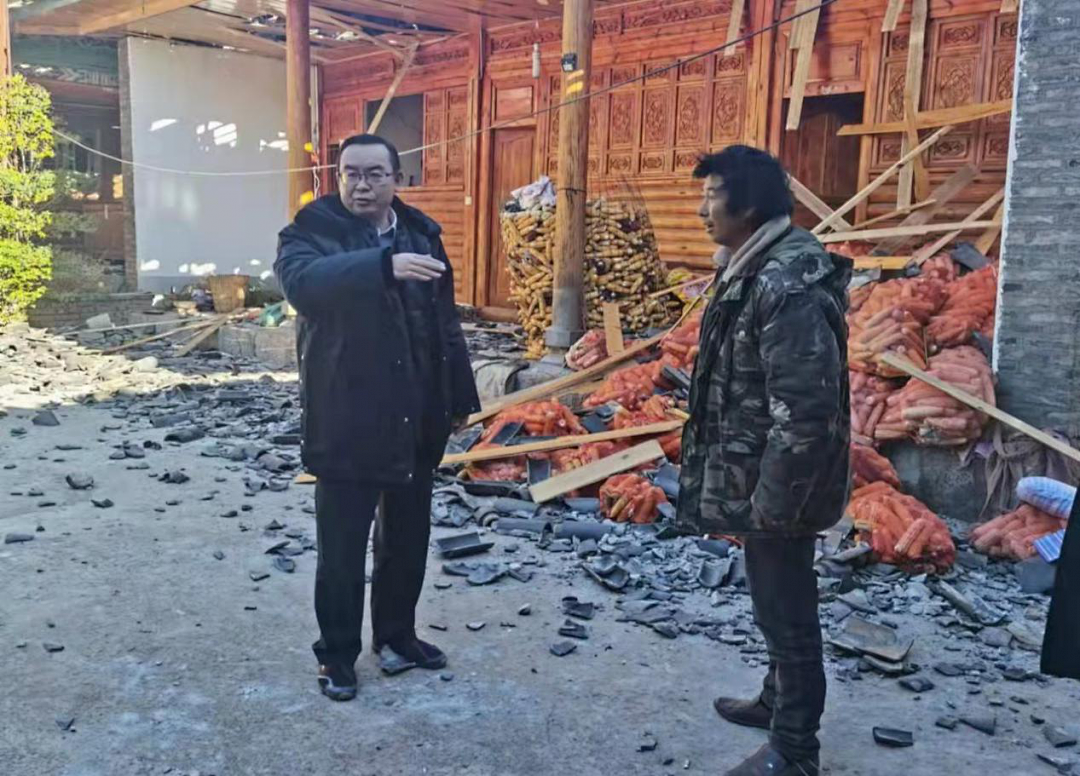 县委常委、组织部部长贺天硕高度重视,第一时间赶赴灾情最严重的永宁镇温泉村,主动请缨担任温泉村抗震救灾工作总指挥长,组织召开现场推进会,安排部署抗震救灾各项工作,将15个村民小组划分成拉翁洛、农场、瓦都、瓦拉壁四个片区,由4个县直部门负责人担任片区长,全面落实各片区灾情摸排、帐篷搭建、物资发放等工作。贺天硕要求:一是地震就是动员令,灾情就是冲锋号,救援人员全员皆兵,闻令而动、令出行随;二是充分发挥网格化管理的作用,统筹谋划、协调各方,加强灾情排查工作,做到排查工作不漏一人、不落一户;三是做好灾区群众心理安抚,不断提振群众抗震救灾的信心。