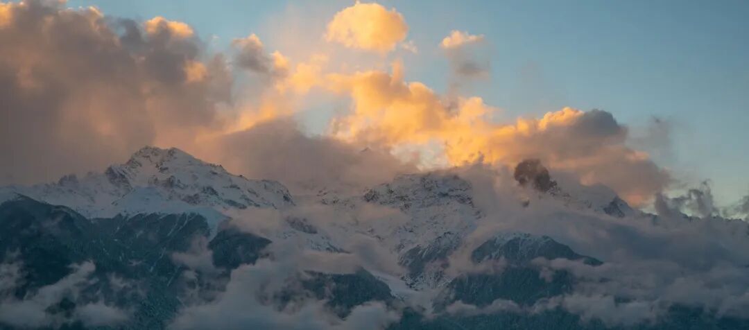 晨曦中的雪山,洁白庄严,神圣的时刻就要降临,第一缕神之光打在了东边6365米的扎堆吾学峰上,第二缕、第三缕……大自然最瑰丽的景色,就这样慷慨地展现在所有人眼前。